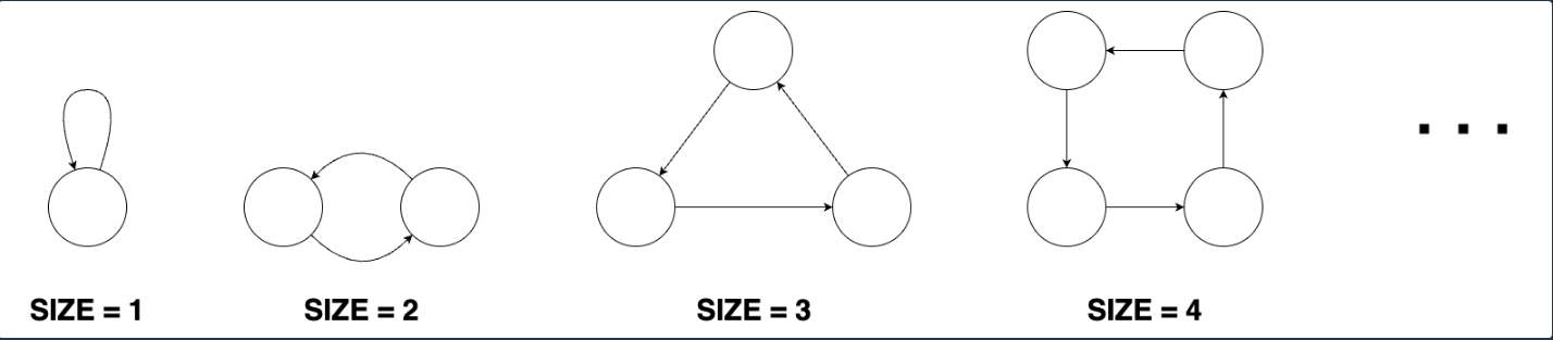 크기가 n인 막대 모양 그래프는 n개의 정점과 n-1개의 간선이 있습니다. 막대 모양 그래프는 임의의 한 정점에서 출발해 간선을 계속 따라가면 나머지 n-1개의 정점을 한 번씩 방문하게 되는 정점이 단 하나 존재합니다. 크기가 n인 도넛 모양 그래프는 n개의 정점과 n개의 간선이 있습니다. 도넛 모양 그래프의 아무 한 정점에서 출발해 이용한 적 없는 간선을 계속 따라가면 나머지 n-1개의 정점들을 한 번씩 방문한 뒤 원래 출발했던 정점으로 돌아오게 됩니다.