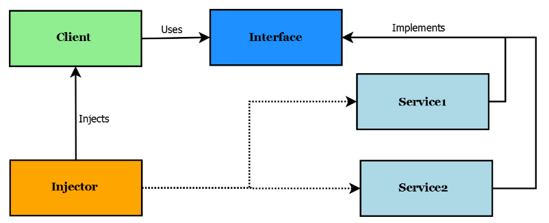 Dependency Injection 을 사용하게 되면, A는 B에 대한 구체적인 정보를 알 필요가 없게 되며, 외부에서 B를 제공받기 때문에 B가 바뀐다 한들, A는 영향을 받지 않게 된다. 이로써, 의존성 주입을 통한 느슨한 결합을 달성할 수 있다.