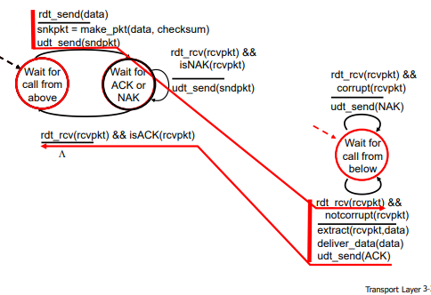 - rdt_send() 라는 event가 일어났을때, sender는 패킷을 만들고 receiver 측으로 데이터를 보내게 된다