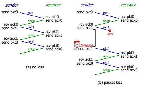 - (b): 패킷이 손실되어 rcv에 도착하지 않는 경우