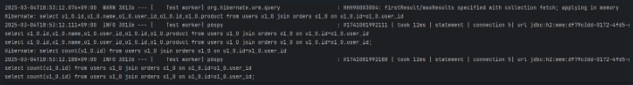 WARN 30136 --- [ Test worker] org.hibernate.orm.query : HHH90003004: firstResult/maxResults specified with collection fetch; applying in memory