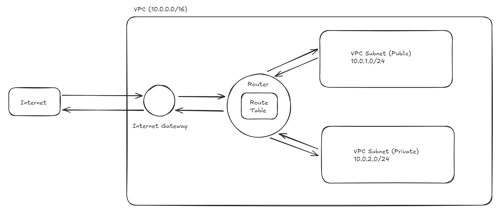 각 Subnet 은 하나의 Route Table 과 연결되어 있으며, 특정 Subnet 이 목적지인 트레픽이 Router 에 들어온다면, 해당 Router 는 Router Table 을 참조하여 해당 요청을 알맞은Subnet 에 전달한다.