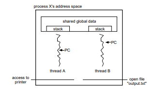 - address space, program code, global variables, heap, OS resources 를 공유 한다