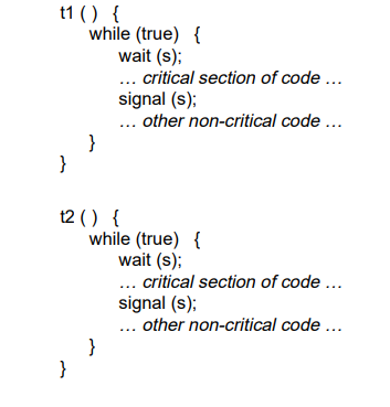 - Critical section에서 떠나기 전 스레드는 V(semaphore) 나 signal(semaphore)를 호출