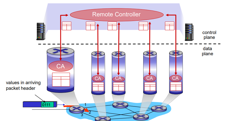 > 각 라우터 내에 각자의 routing algorithm component가 존재, control plane 과 소통