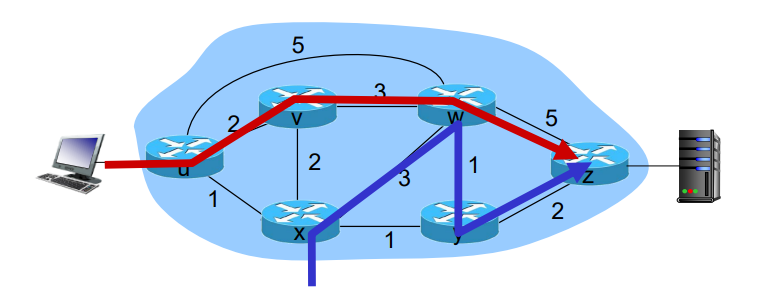 > 만약 네트워크가 u ~ z 는 uvwz를 통해서, x ~ z 는 xwyz를 통해 가길 원한다면?