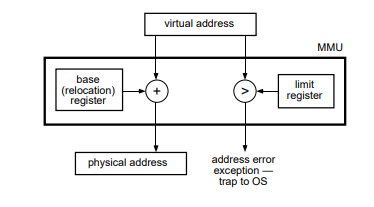 >>> if (virtual addr > limit) ~>address exception으로 OS에 가두어 둔다
