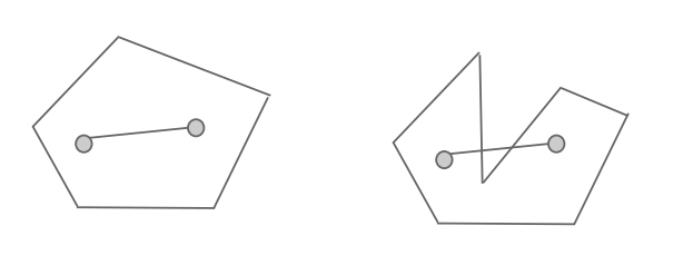 >> 만들어진 볼록 다각형 안의 두 점을 잇는 직선은 항상 다각형 안에 있다.