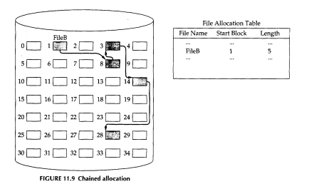 > OS 는 파일에 의해 사용되는 모든 블럭의 포인터를 저장할 배열을 할당
