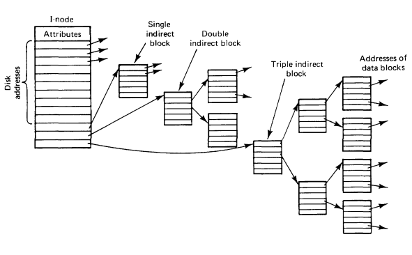 >> 만약 파일이 10 block 보다 크다면 (5120 byte), 11번째 pointer 는 single indirect block 을 가르킨다