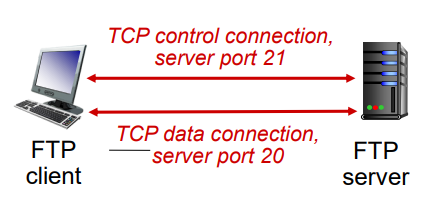 - Server는 전송 요청을 받았을 때, server는 2번째 TCP data 연결을 시작한다 (port 20)