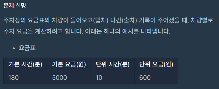 - 문제에서 주차장에 없는 차량이 출차되거나 이미 있는 차량이 다시 입차되는 경우는 없다고 하였다.