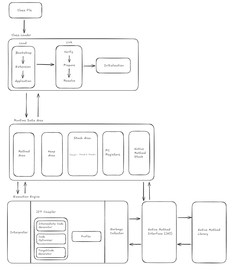 JIT Compiler 는 runtime 에 byte code 를 native code (기계어) 로 변환하는 역할을 한다. Jit Compiler 없이 Interpreter 만을 사용한다면, 플렛폼 독립성을 제공하는 대신 느리다는 단점이 있었다.
