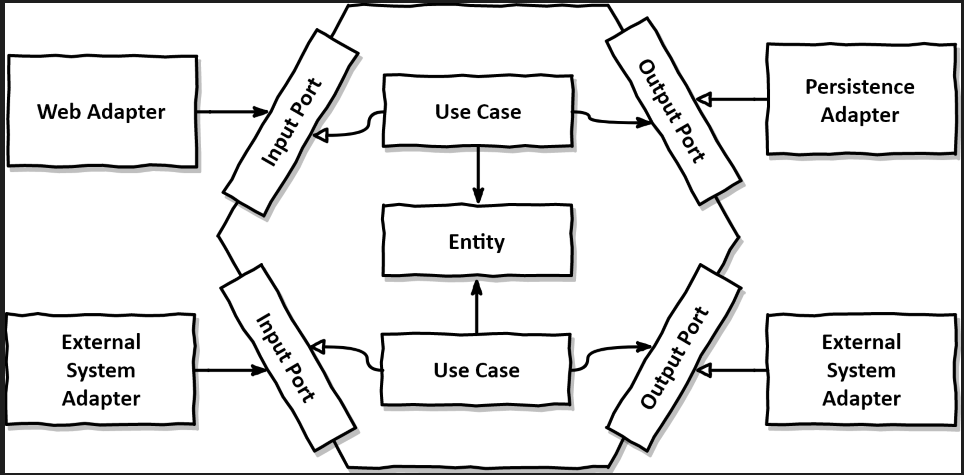Member= 엔티티MemberService= 유스케이스MemberRepositoryPort= 인터페이스 (Port)MemberRepositoryAdapter= 어댑터 (Adapter)JPA Repository= 프레임워크