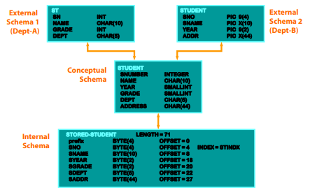 >> Internal level has internal schema -> 물리적 저장 구조에 대한 설명