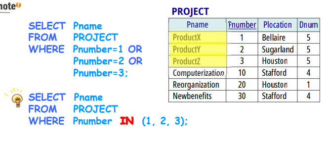 WHERE Pnumber IN(3,20) OR Pnumber IN (10,30);