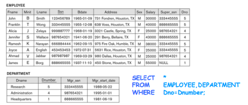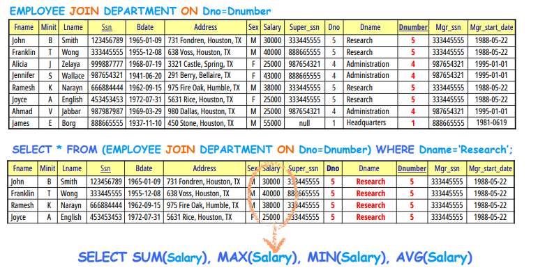 FROM(EMPLOYEE JOIN DEPARMENT ON Dno=Dnumber)